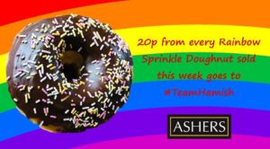 20p from every Rainbow Sprinkle Doughnut sold this week goes to #TeamHamish! 04/06/2019 | No Comments 20p from every Rainbow Sprinkle Doughnut sold this week goes to #TeamHamish! Categories: News