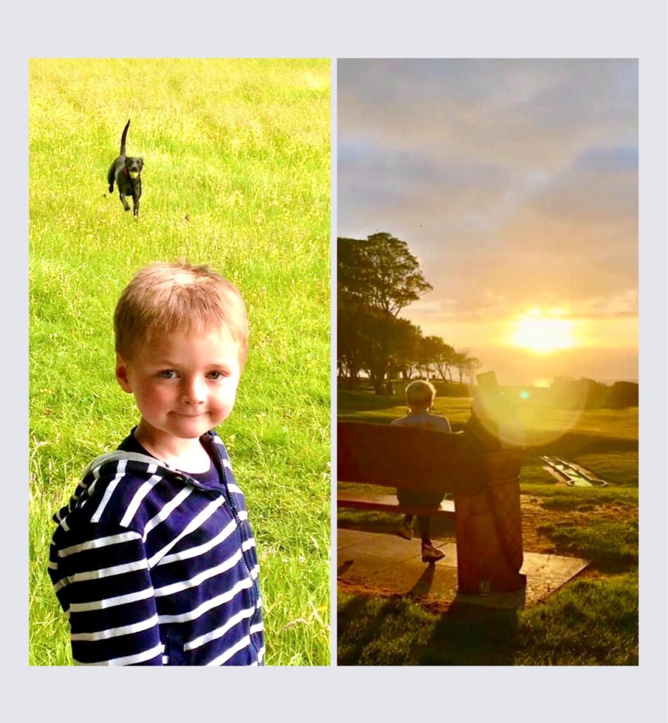 On this beautiful day, I just wanted to share a couple of beautiful memories that had popped up recently – One Boy & His Dog 🤗 🐾 And, having just arrived back late from a long few days of treatment in Glasgow 😔 Susan sat on Hamish’s Ice Cream bench, appreciating being home, and the beautifully amazing sunset ☺️ in the place of our next TeamHamish proposals 😃🌈💜🌈