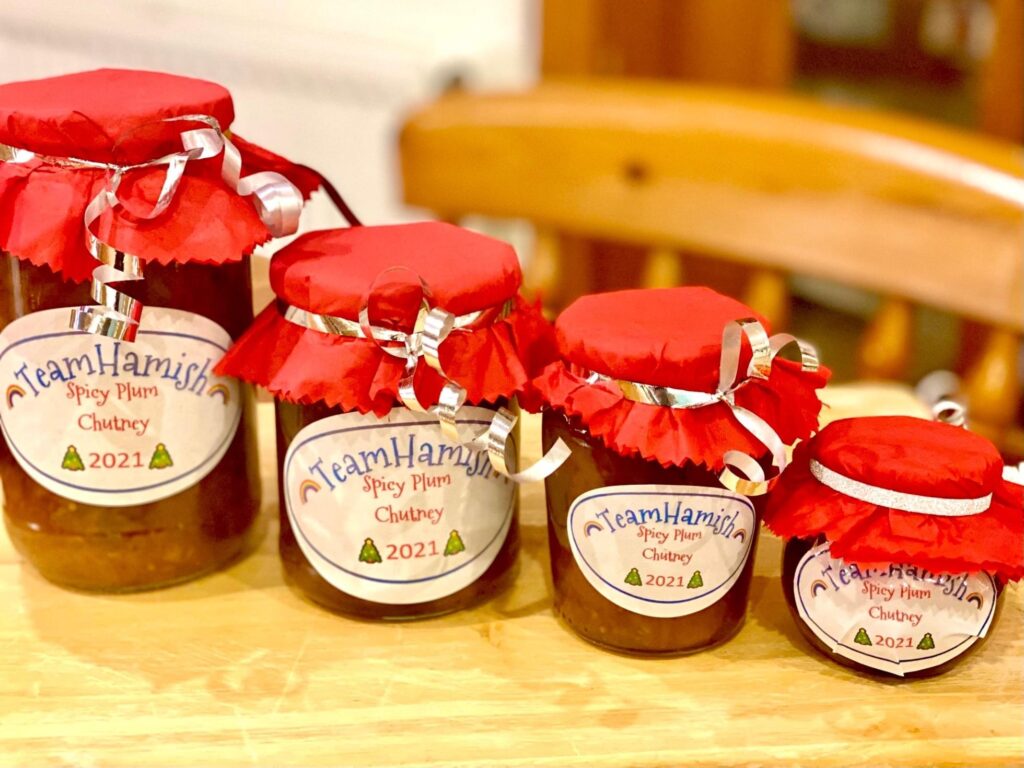A very talented friend and TeamHamish supporter has made delicious ’Spicy Plum Chutney’ with local plums 😋 Perfect for the festive season, and a tasty gift for family & friends. Extra Large jar £2.50, Large £2.00, Medium £1.00, Small 50p. All proceeds to 🌈TeamHamish🌈 Selling quickly To buy contact teamhamishmerch@gmail.com 🌈💜🌈
