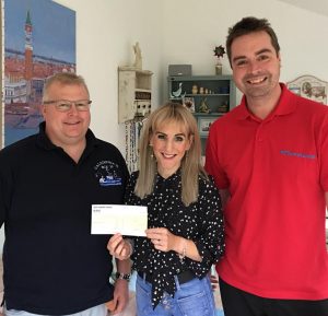 We were honoured & delighted to accept this extremely generous Β£300 cheque tonight. This was from part of the sale of the first box of fish landed from Caledonia III BCK35 in Peterhead on 31/08/18.