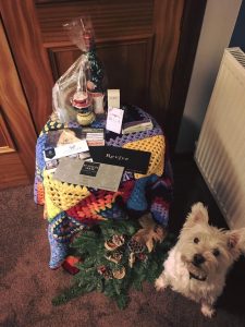 Great raffle prizes for the TeamHamish Ceilidh on Friday night (minus the dog!).Here are just some of the prizes – massive thank you to all the businesses and individuals who have donated items or services to it:Items for the ‘Wear a kilt or tartan’ prize draw have been kindly donated by Co-op FoodRaffle Prizes:£30 Treatment at St Ninian House, Treatment roomsLunch for 2 at SunDancer£33 Cheese Box from Connage Highland DairyHead Massage from Revive Hair and Beauty SalonGoody Bag of items from Highland DelicatessenNail products from Bella Nails and BeautyGorgeous Rainbow Blanket from Crafty CarersChristmas Foliage Spray from Greens NurseriesThank you – see you on Friday night 💙🌈
