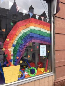 Can’t wait to see more businesses decorating their windows. The support network from our local businesses is phenomenal. What an amazing town we have #Nairn Rocks 🌈💙🌈 — feeling delighted