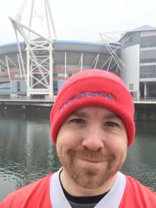 Our great friend Tom, we have known Tom a long time, he works for Cancer research UK. We are so grateful to Tom for many things including his support to #TeamHamish. Here he is in his hometown of Cardiff sporting his #TeamHamish hat. ๐๐๐โค๏ธ